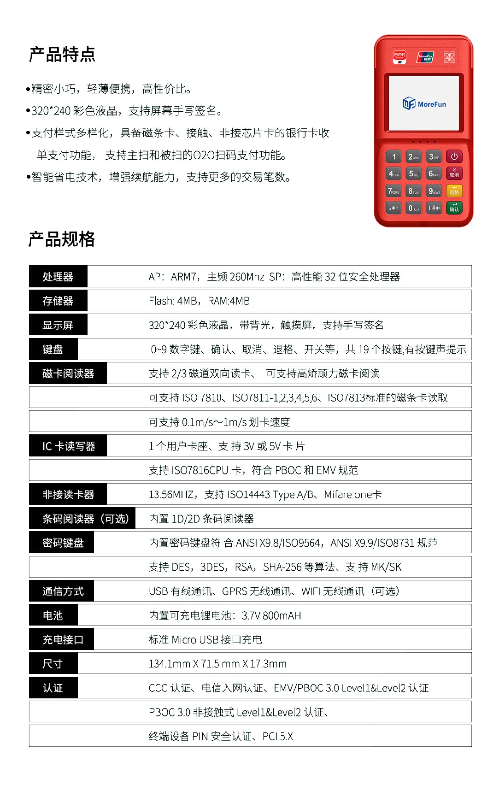 首页>>云南产品中心>>云南手持无线POS 云南电银支付-4G+扫码枪 高配版 * 性能优越:32位高性能ARM11安全CPU;整机通过业内更先进的PCI PED4.X 安全认证及国内受理终端PIN输入设备安全评估检测认证,多项措施保障金融交易的安全;* 时尚外观:外形小巧携带方便,高抗跌落性能、宽工作温度、防水防尘设计、外壳坚固耐刮、户外携带式作业更加耐久可靠。* 通讯备份:支持2G-3G扩展;* 超长续航:3.7V-800毫安稳定续航能力,智能电池管理保证持续工作18小时,待机72小时。 标准配置 返 回